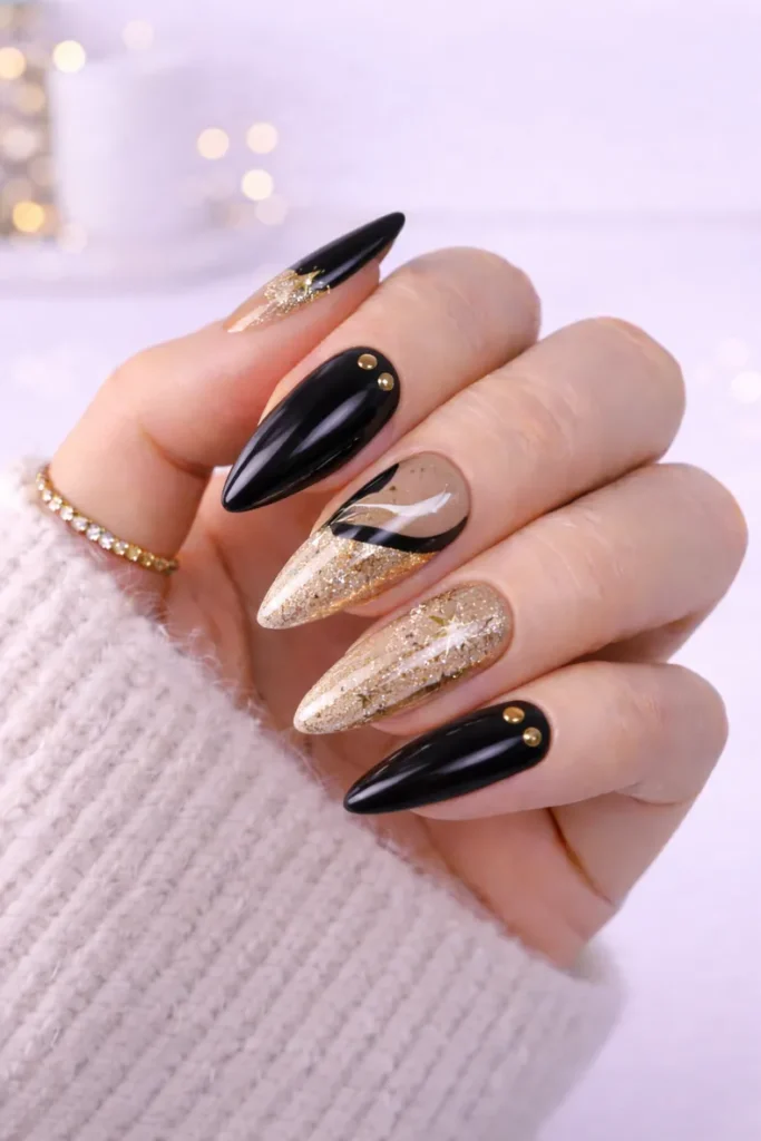 - Black and Gold Nail Combos