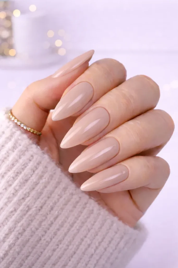 - Long Almond Nails in Neutral Shades