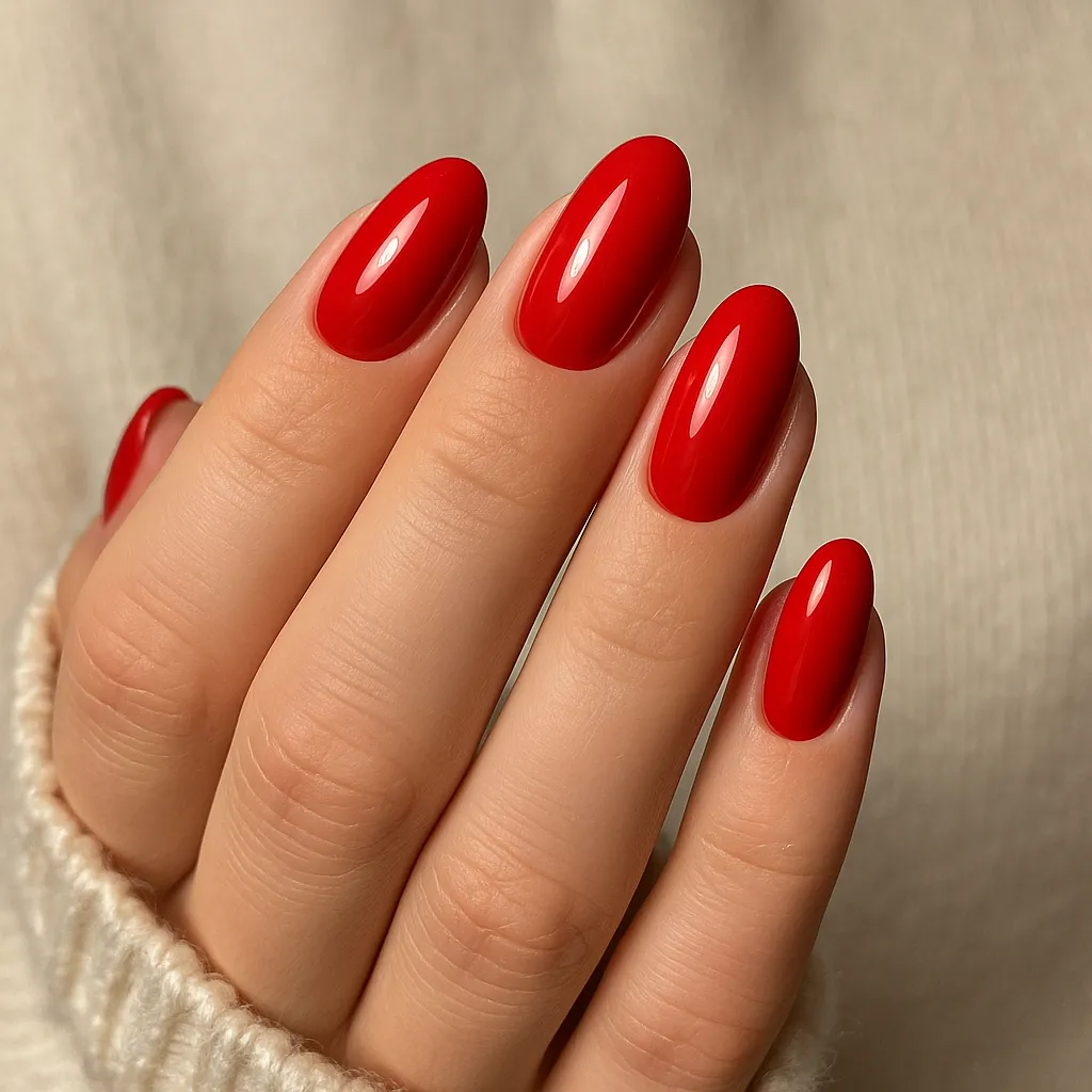 Red is iconic for holiday vibes—choose bright cherry red, deep wine, or glossy candy apple shades. Add a touch of gold flakes or subtle glitter for a more glamorous finish.